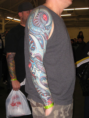 There are some important things that you should remember before you go to get tattooed. Make sure you choose a tattoo that you will be comfortable with for the rest of your life. If you are not sure about a tattoo, give your thoughts more time. You don't want to get a tattoo that you will later regret. Don't rush to get inked! Men and women are always getting tattoos without thinking. In most cases, they usually hate their tattoo later on down the road. Even with laser removal and cover ups, not all tattoos can be fixed. If you feel that bio-mechanical tattoos are not for you, be sure to follow the links below to view more tattoo designs, symbols, ideas, and meanings.